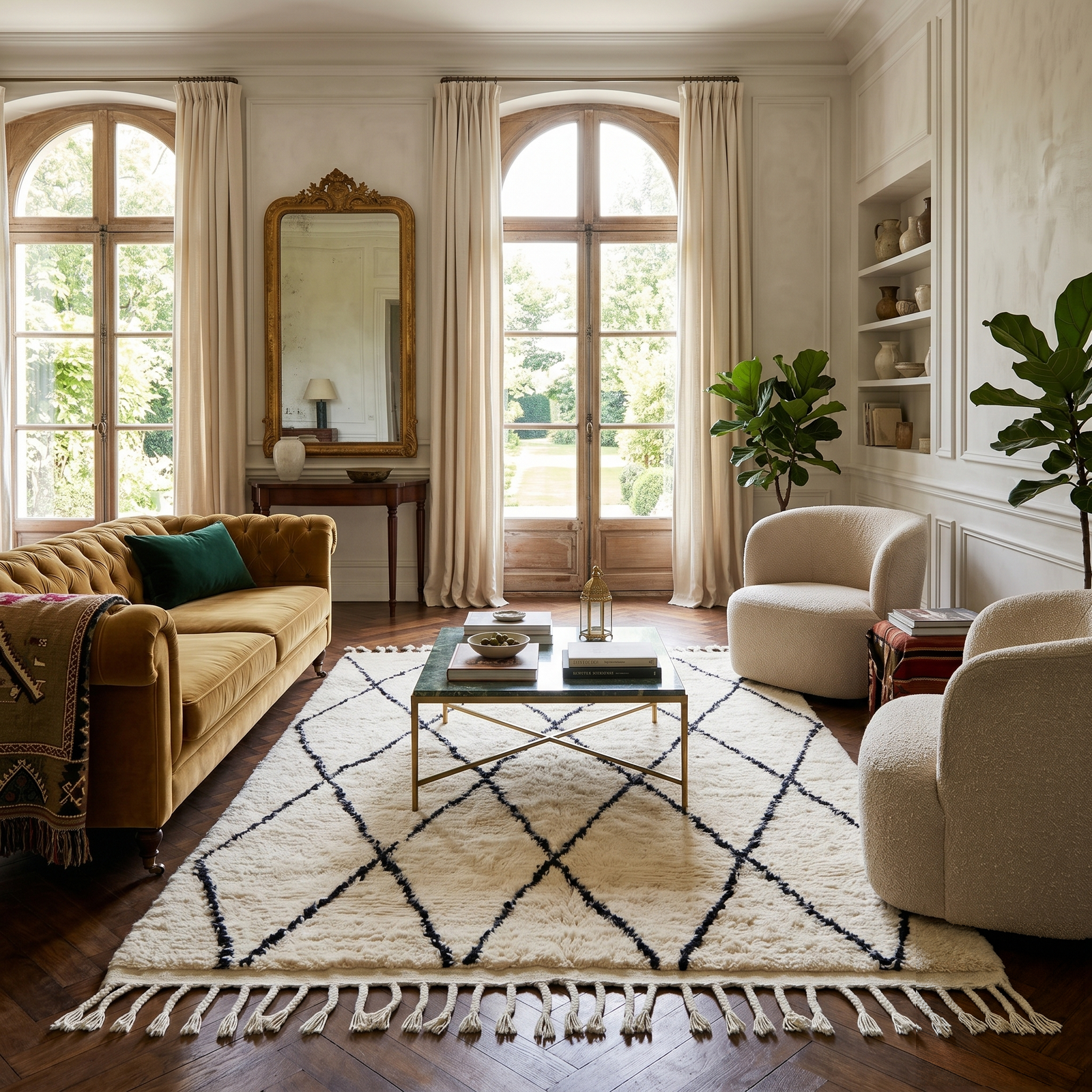 Elevate your living space with the timeless elegance of this classic diamond-patterned Mrirt rug, combining luxurious softness with minimalist sophistication.